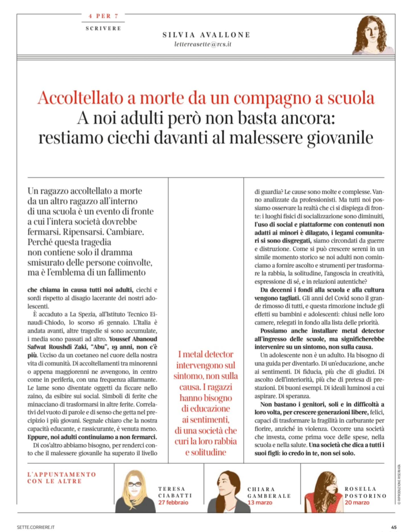 Accoltellato a morte da un compagno di scuola. A noi adulti non basta ancora: restiamo ciechi davanti al malessere giovanile