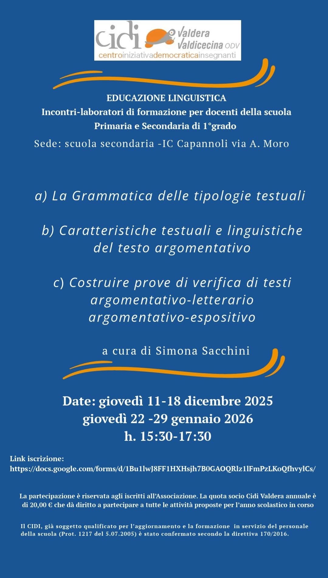 Incontri-laboratori di formazione per docenti della scuola primaria e secondaria di primo grado